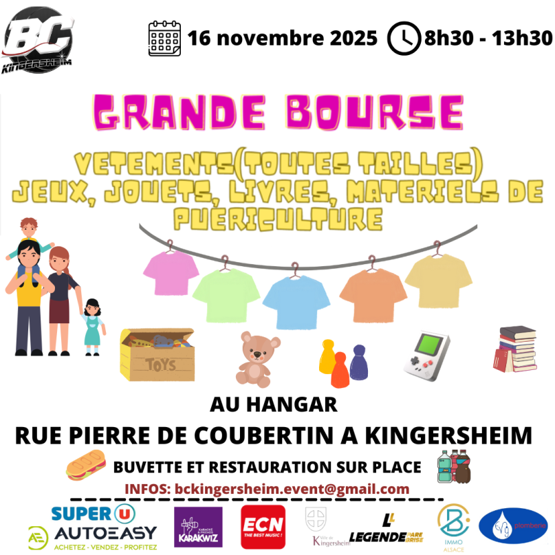 Nouvelle Bourse aux Bourse aux vêtements (toutes tailles), jeux, jouets, livres...